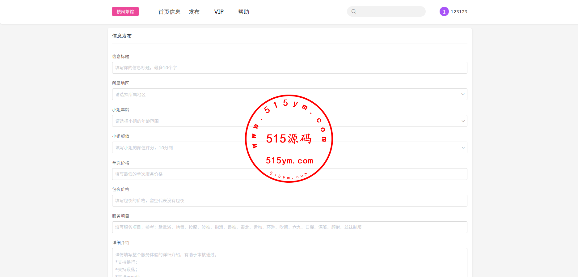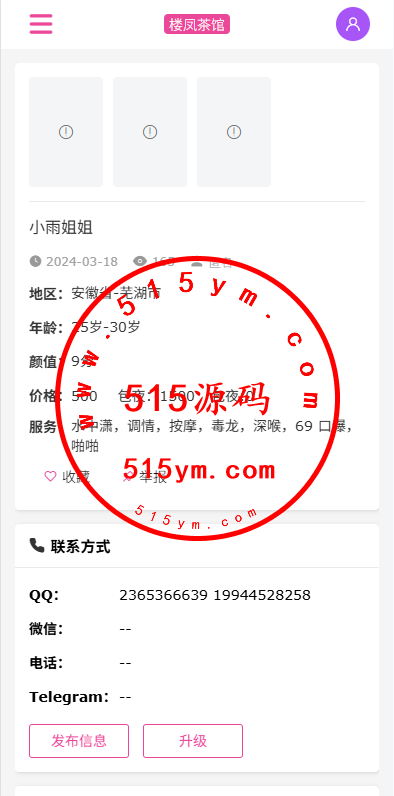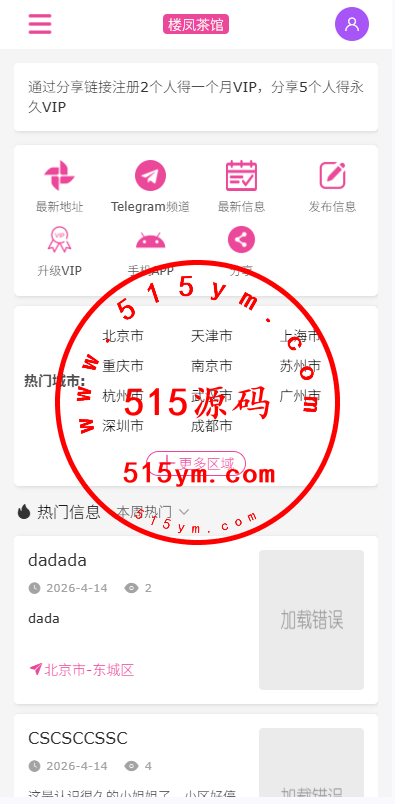 JAVA版同城楼凤系统/楼凤茶馆/信息发布/信息网此套是开源版本,前端uniapp开发电脑手机自适应,后台VUE,服务端JAVA开发全开源